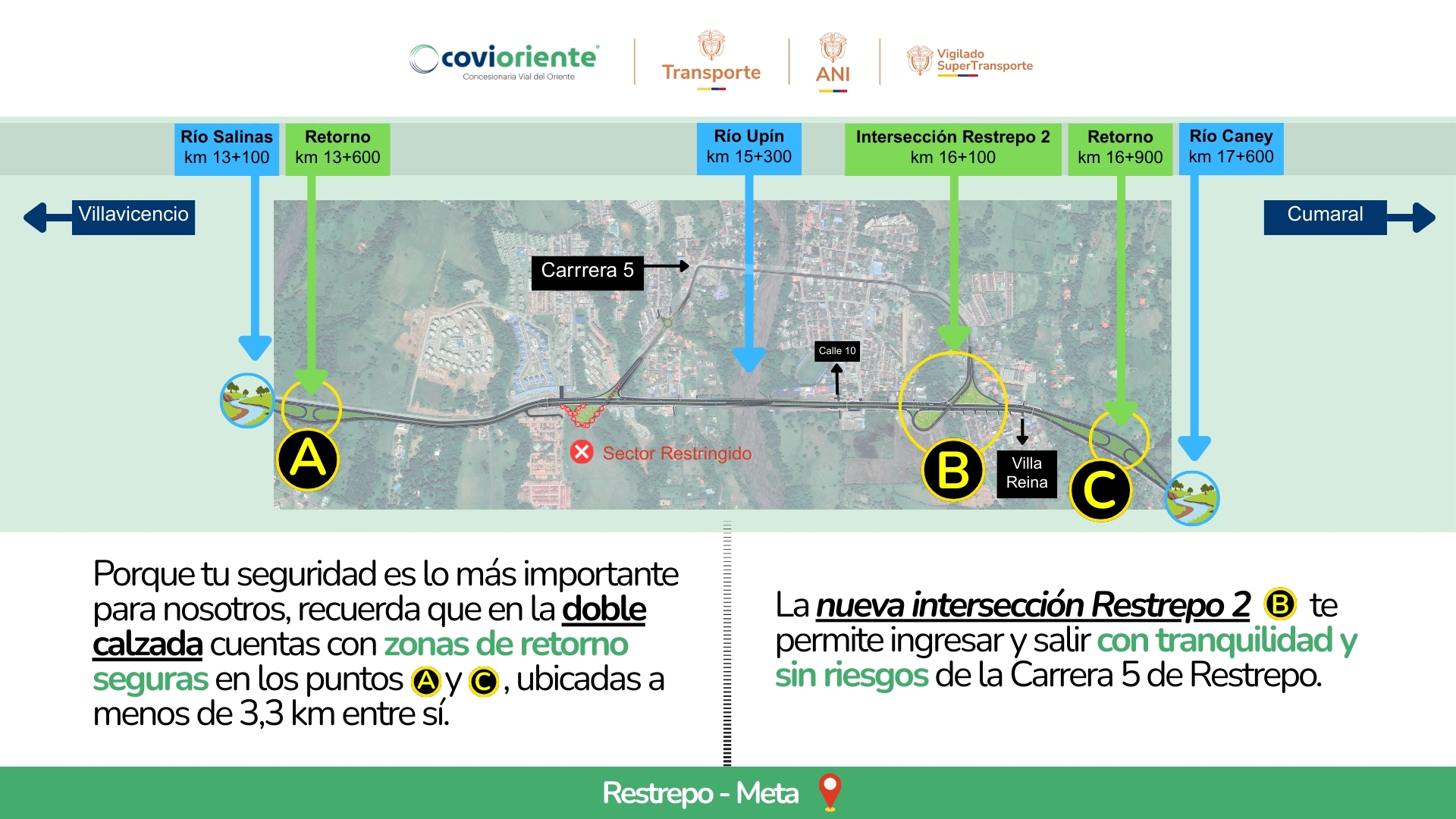 La doble calzada de Restrepo es una infraestructura diseñada para mejorar la movilidad; su buen funcionamiento depende también del uso responsable de la vía, el respeto por la señalización y la correcta utilización de los retornos habilitados.