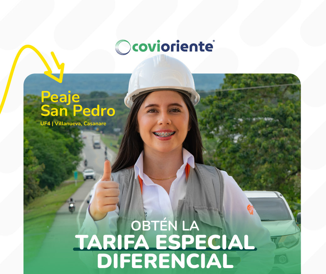 El beneficio aplica para todas las categorías vehiculares, específicamente: IE, IIE, IIIE, IVE, VE, VIE y VIIE, en la estación de peaje San Pedro ubicada en el tramo Villanueva – Monterrey en Casanare.